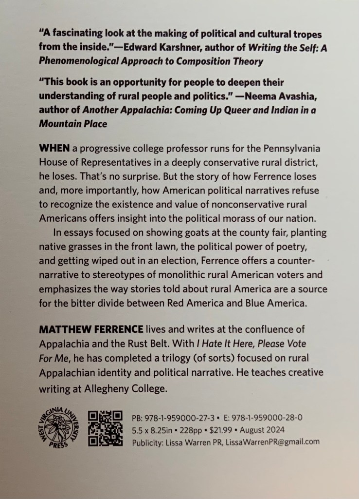 Well, it’s been a long road to this point. I’ll spare you those details (for now!). But the official publication date for I Hate It Here, Please Vote For Me: Essays on Rural Political Decay is almost upon us. August 1 is the day.