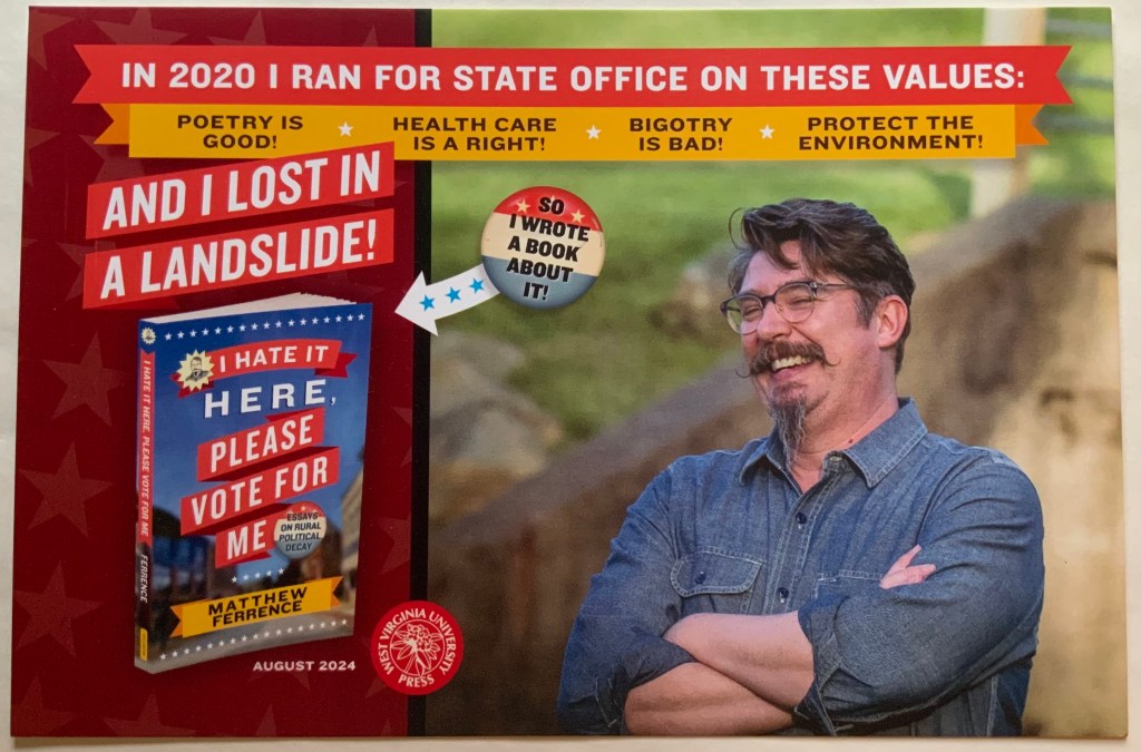 Anyway, here’s the shameless promotion. Why not order the book!? Now’s a great time, because the Press is offering a 20% sale all month long. Use code SUMMER24 when you order straight from WVU Press. Or, you could order the book from your favorite local bookshop, which would have the added bonus of introducing the book to said bookshop, making them say why yes we do need this book on our shelves for others to buy!